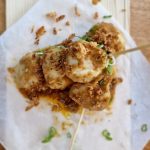 Handmade Tilapia Fish balls with Sambal Curry sauce, Crispy shallots and Spring onions