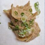 Handmade Chicken dumplings (Mo:Mo:) with Very spicy red chilli sauce and Spring onions